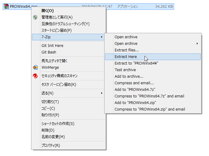 7zip 展開に対応していないインストーラーの場合は、インストーラーそのものが展開機能を持っていることが多いので、展開方法をメーカーに確認してください。
